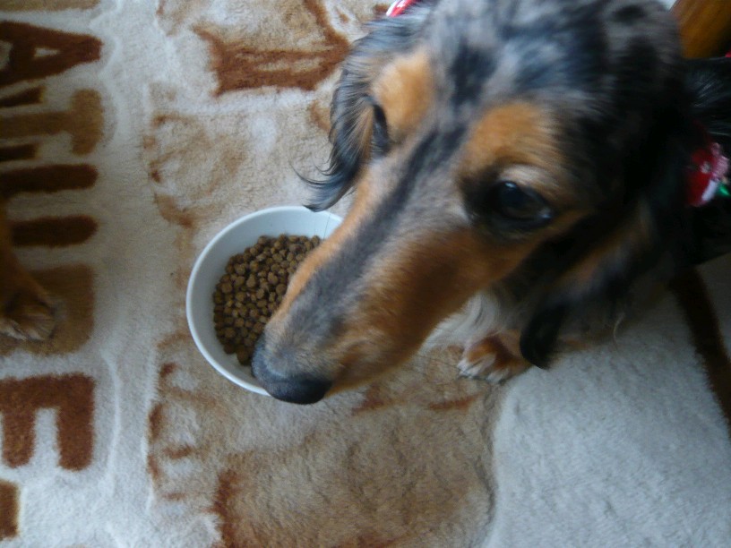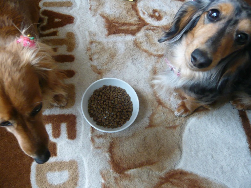 オスワリ、マテ、そしてヨシの合図で食べ始めるお二人さんです。