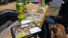 ボルさんの奥様とお話してたら、ボルさんがお弁当とお茶を買ってきてくださったので