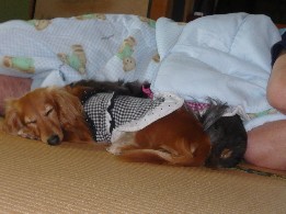 うちの親子は滅多にくっついて寝たりしませんよ~