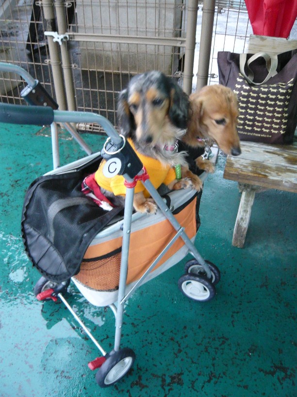 ワンコ用のカートを持ってないので雨の中2ワンを歩かせると大変なことになっちゃうし、
