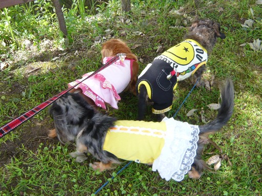ヨーキーズは左からきらりちゃん、レイくん、ララちゃん