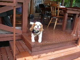 ゆっきぃさんちのエルちゃんだけは、お庭からテラス席に戻って、