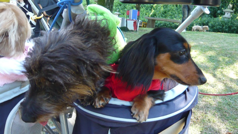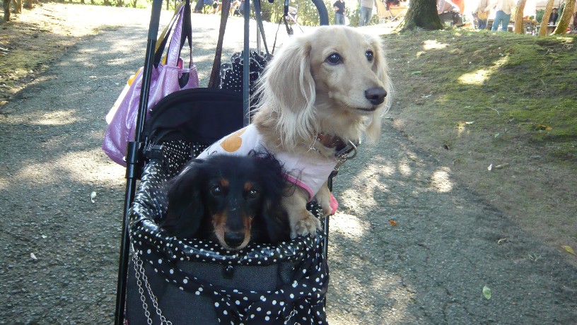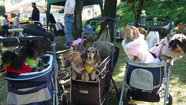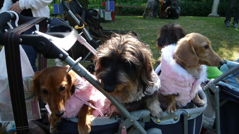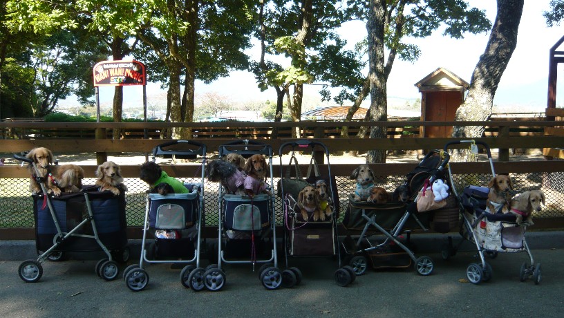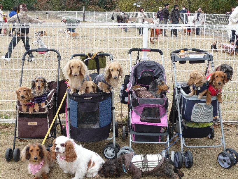 ドッグランの前を通っていく一般の入園者の方々が「ダックスがいっぱい~」と、