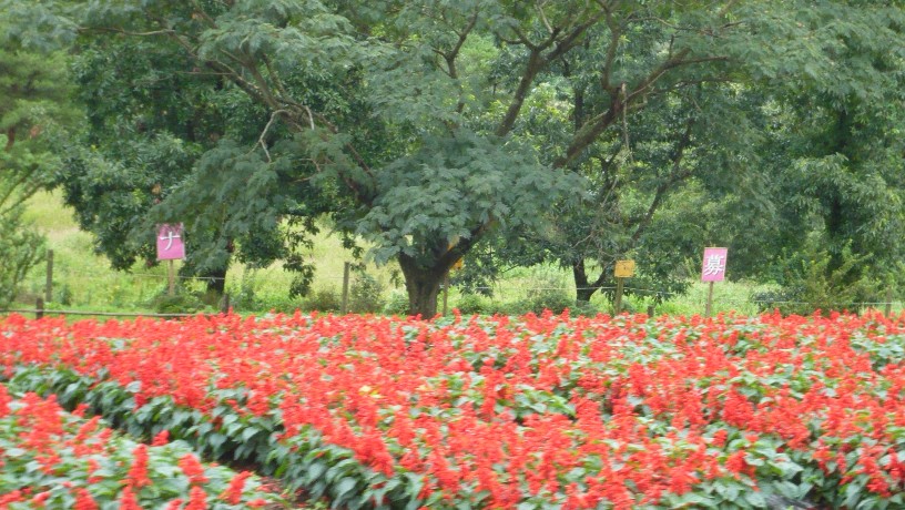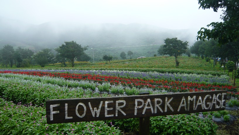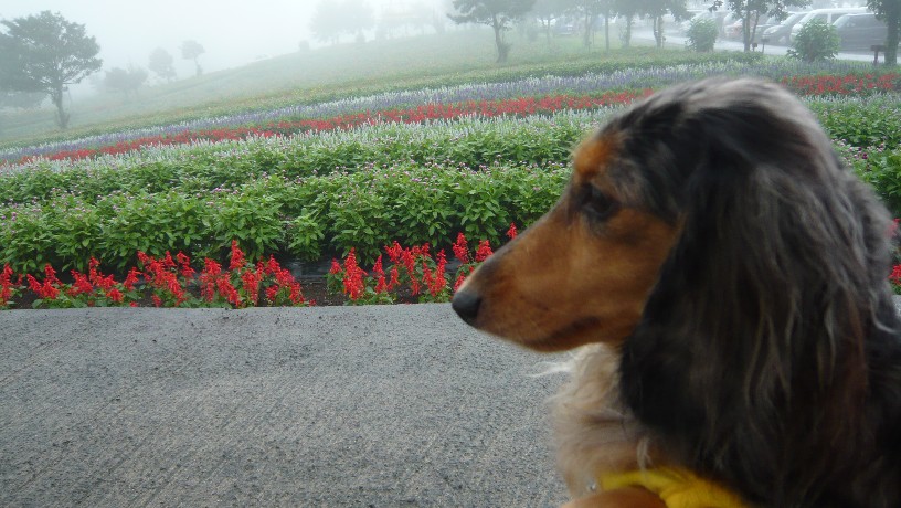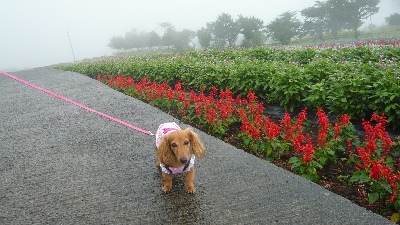 霧に覆われていたお花畑も、しだいに霧がはれていきキレイな