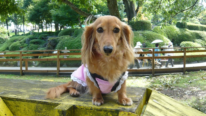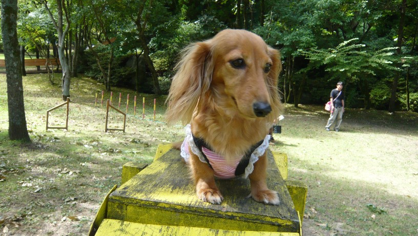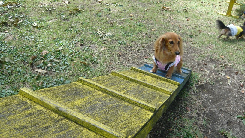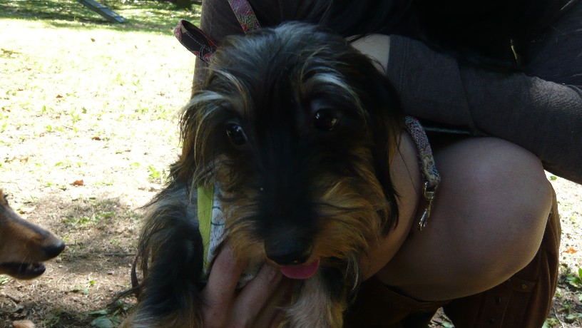 で、てんちゃんはなちゃん姉妹の側には見慣れないワイヤーダックスちゃんが・・・