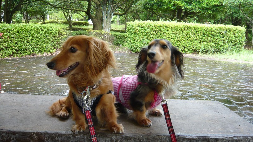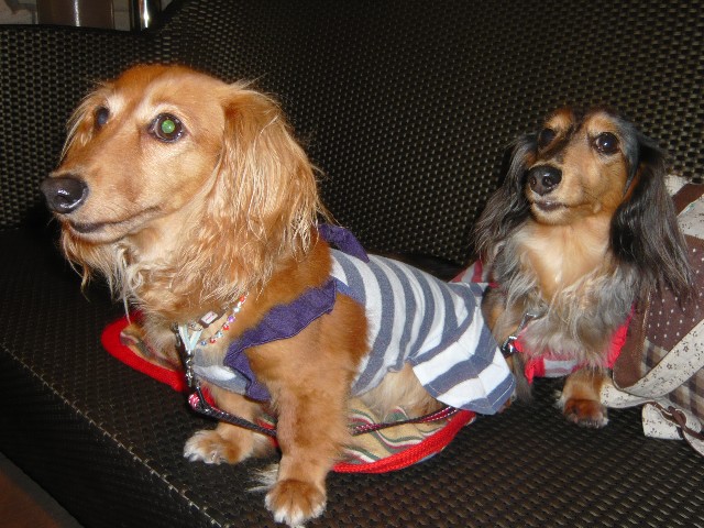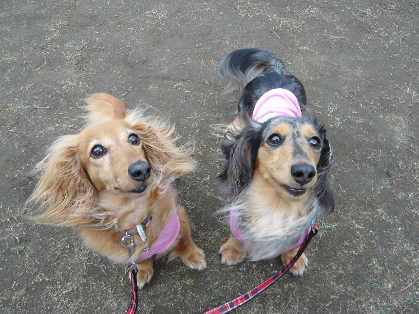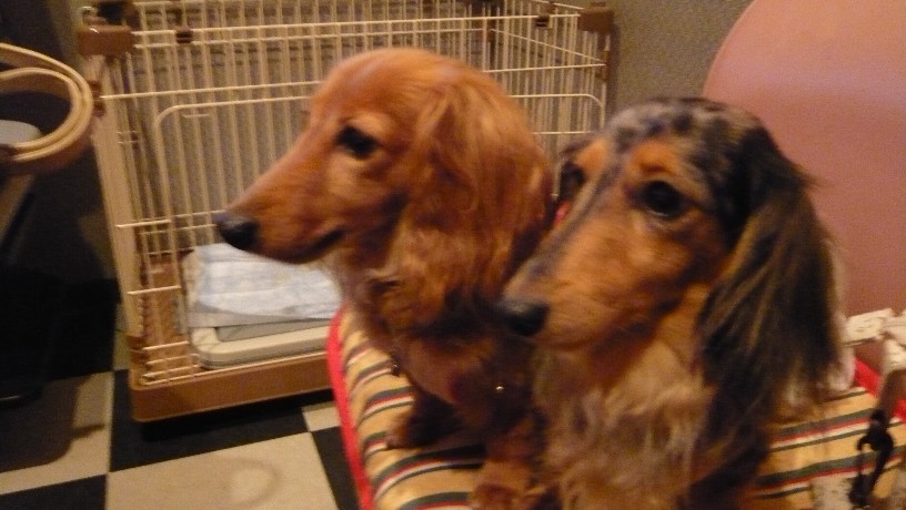 ミニチュアダックス ミッキーのtomoさんとミッキーくん(左)