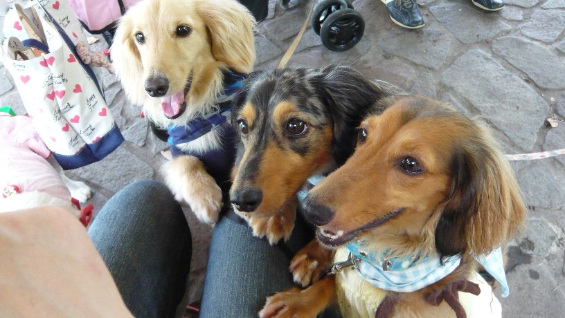 おやつを持つゆっきぃさんに群がる6わんこ~