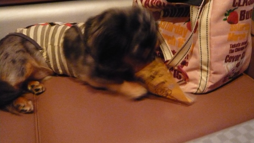 きょんさんの歌ってる時だったかな~、バッグの中からおやつの袋を見つけ出し