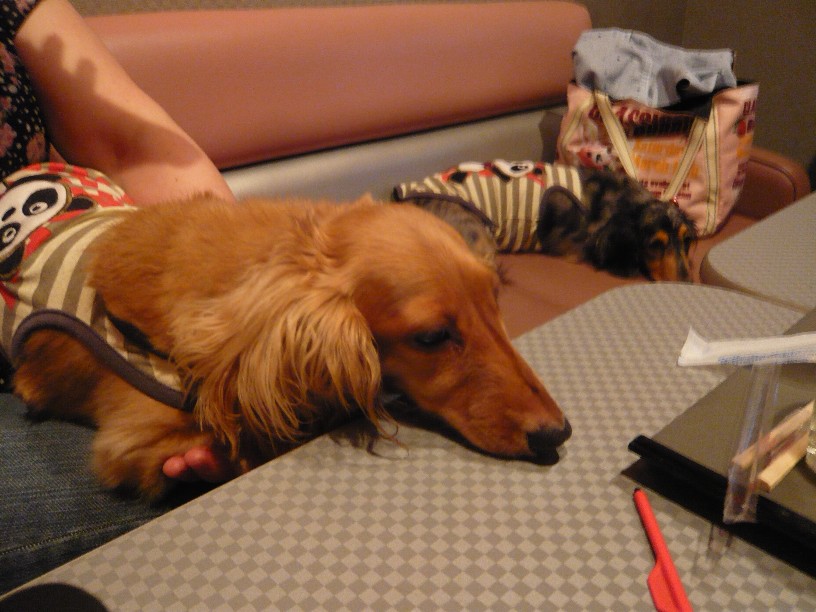 ココちゃんはきょんさんに抱っこされテーブルにアゴ乗せしてました。