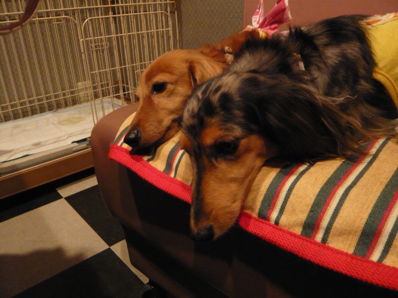 おやつをもらって満足なわんこたち、そのうち各自好きな場所で寛いでました (o^∇^o)ノ