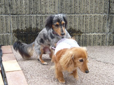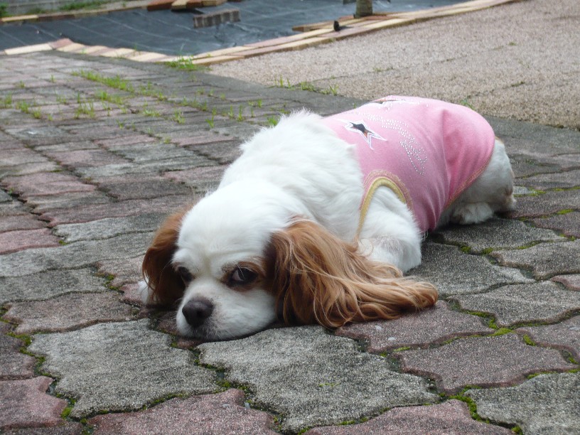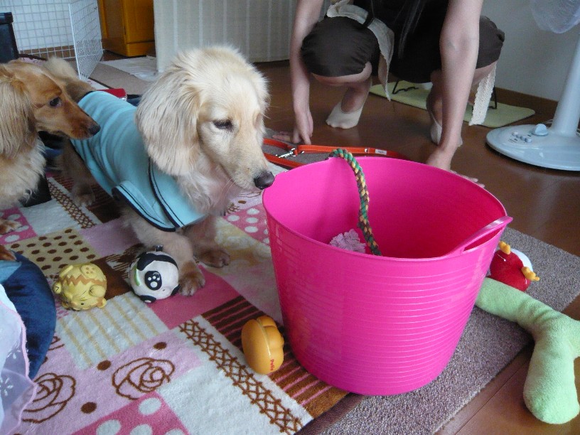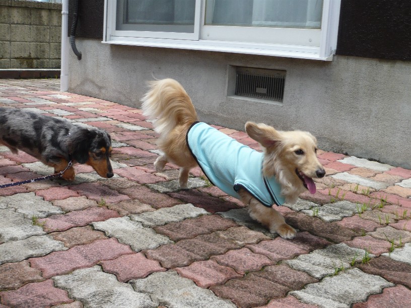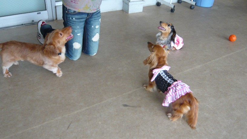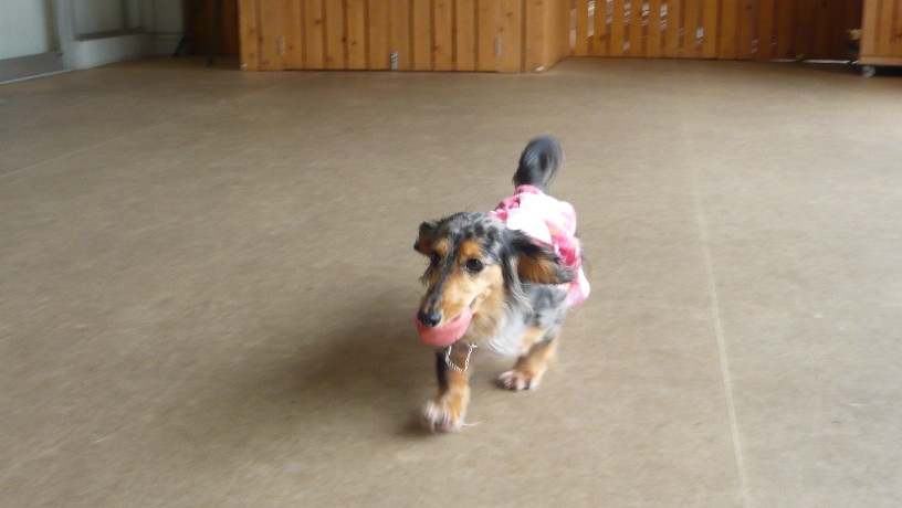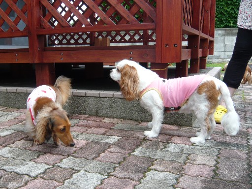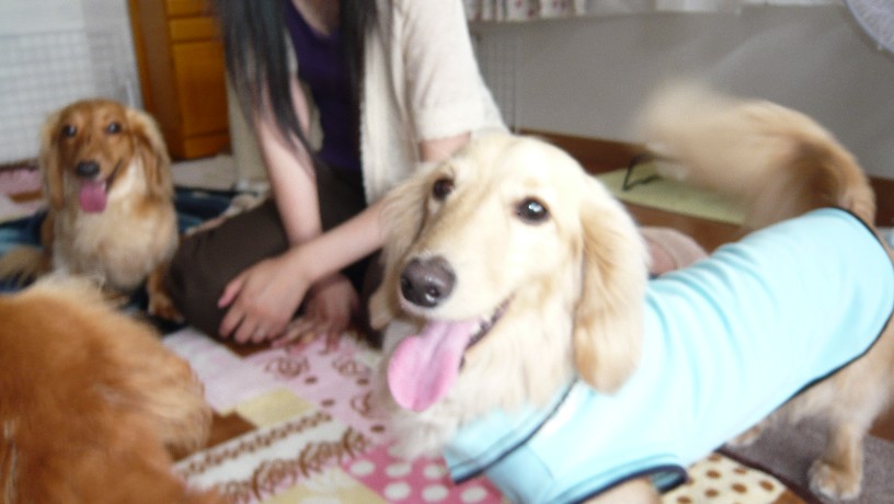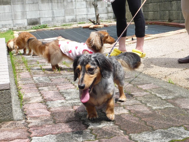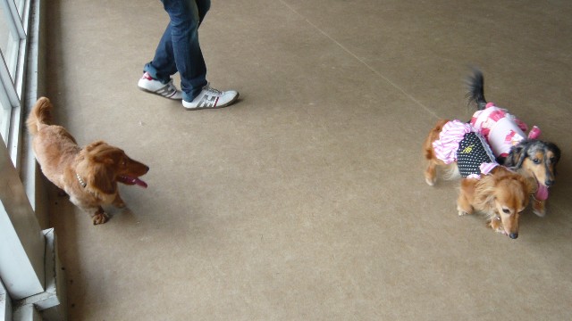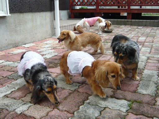 わんこたちはお庭で遊んだ後、またまたお家の中へ
