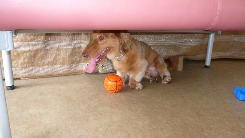 ボールを取りに行ってはソファーの下に隠れてたのでした~