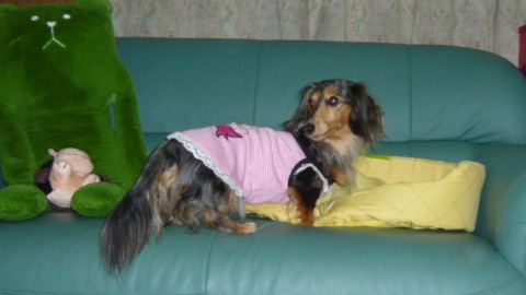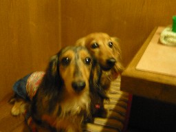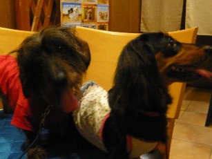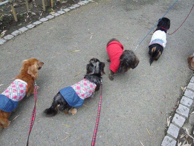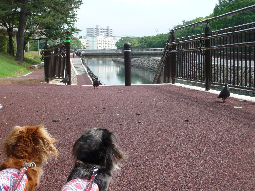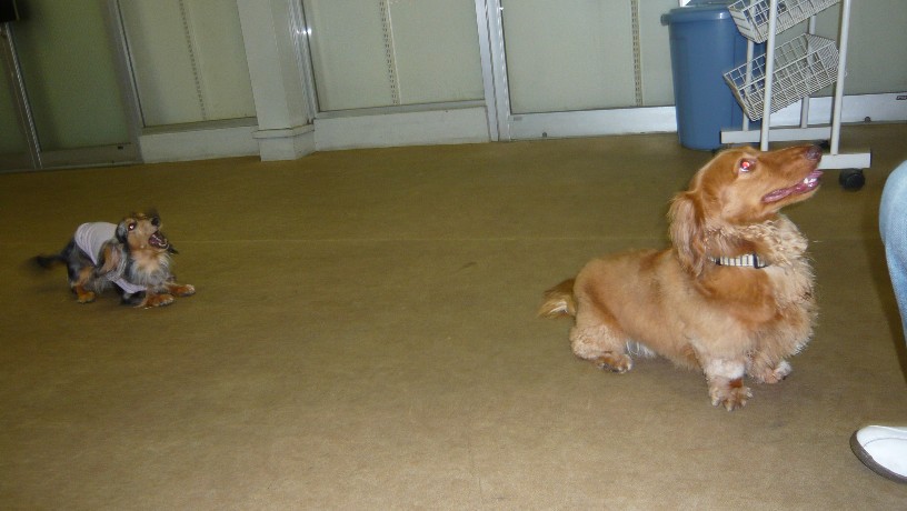 トリさん見ても全然平気ってダックスちゃんもいるけど、この親子は狩猟犬の血が濃いのかしら~
