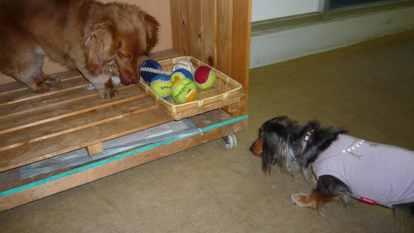 で、ともちゃんが投げてくれるボールをヴァニさんが先になって取に行くので、