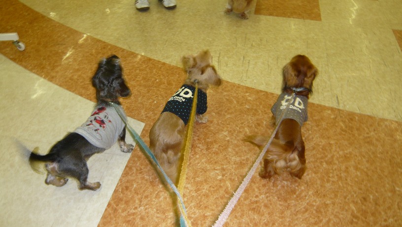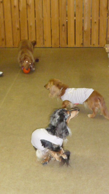 お写真見た後、サークルの中で遊ぶ3わん