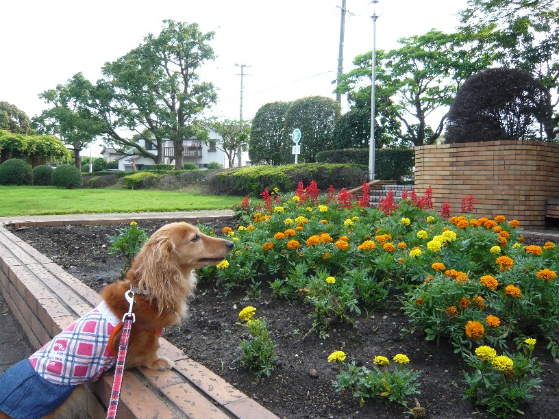 早いうちに雨も上がって地面も乾いたので公園にお散歩できました