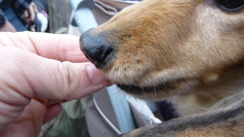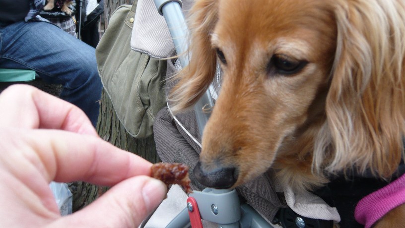 この日の13わんこの中でも最年長のエルねえさん、普段おやつの時でも食いしん坊ダックスたちより