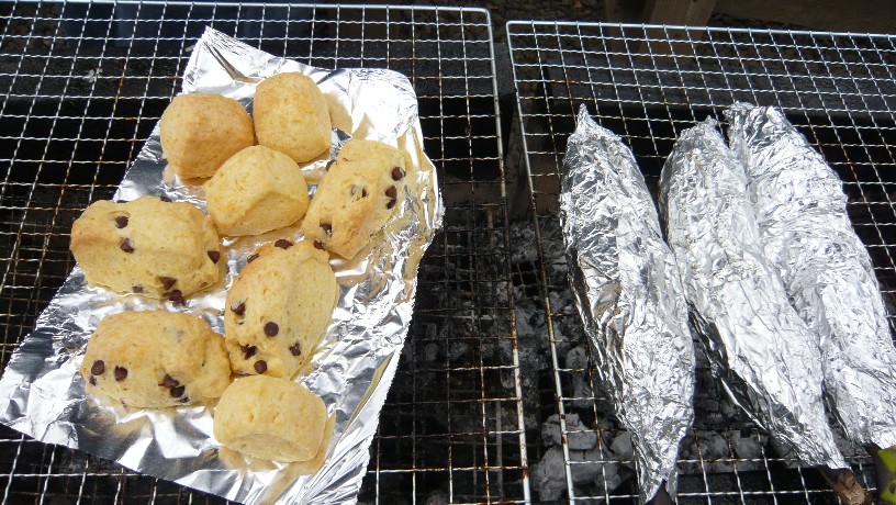 tomoさんがスコーンを焼いてきてくれ、きょんさんがマシュマロチョコバナナを
