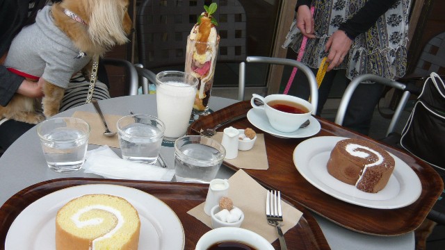 tomoさんがパフェ、ゆっきーさんとわたしがロールケーキです。