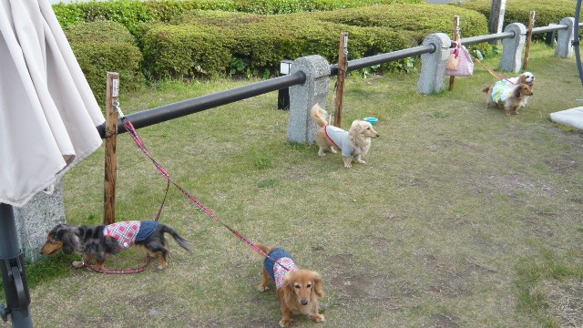 ゆっきーさんとtomoさんが店内に入っていっちゃったから心配そうな3わんこたち・・・