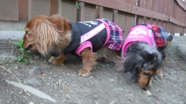 ランにくるとクンクンしまくりのちょこさんと、ママの後ろをついて回るヴァニさん