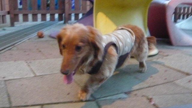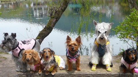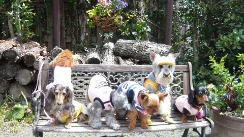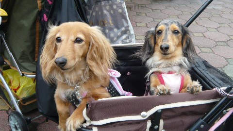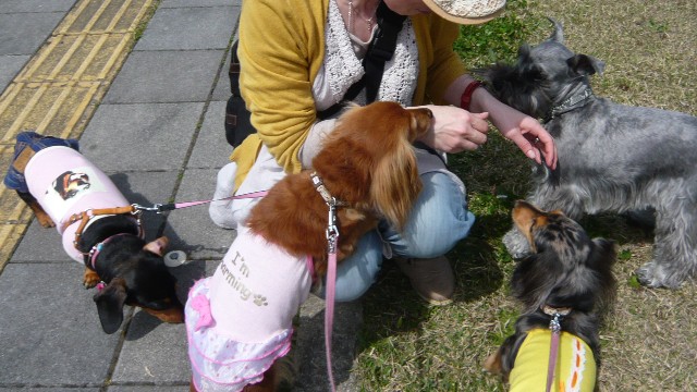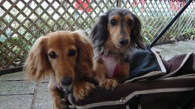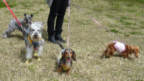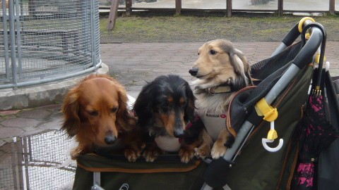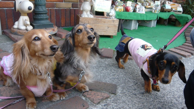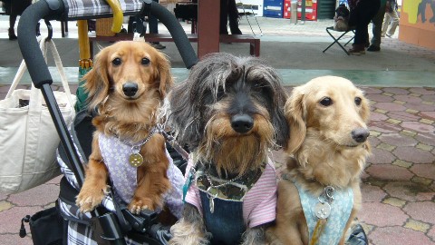 左のダックス3人娘はちょっとお疲れ気味です