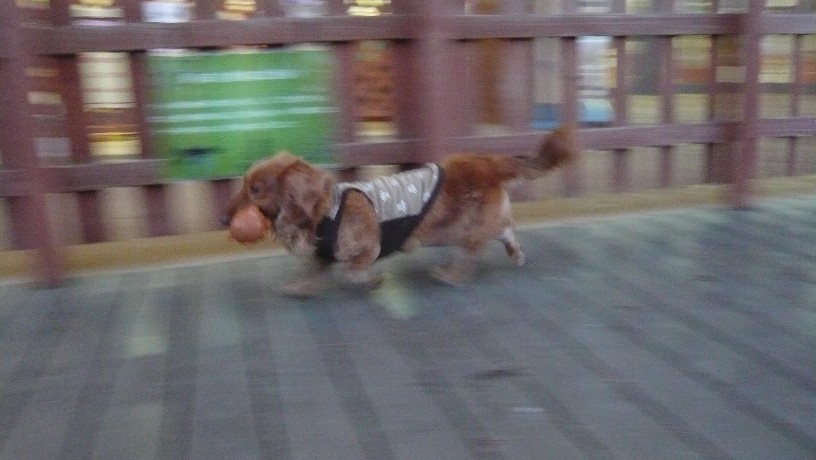 だいごくん、ボールを咥えていてもハイスピードです