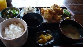 左がわたしたちが食べた、だんご汁定食、右が寧々さんが食べた鳥天定食です。