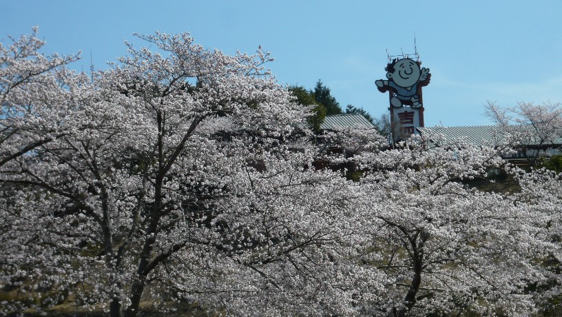 上の方には民話「吉四六さんの天のぼり」をイメージした吉四六ランドのシンボルタワーが