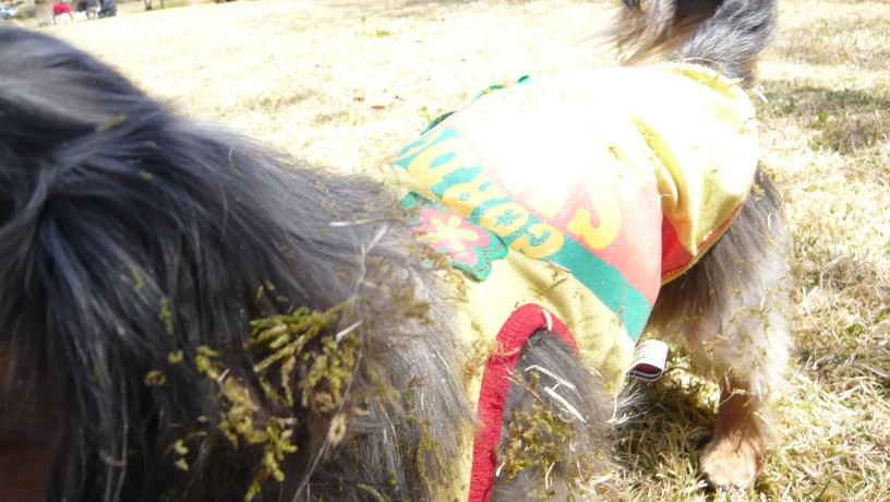 体中、芝だらけになってました