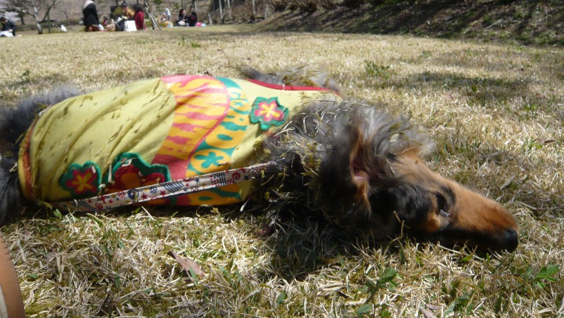 エルくんは芝の上でお得意のウリウリ~を疲労してくれました
