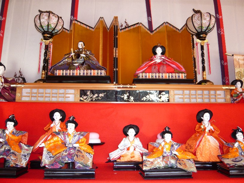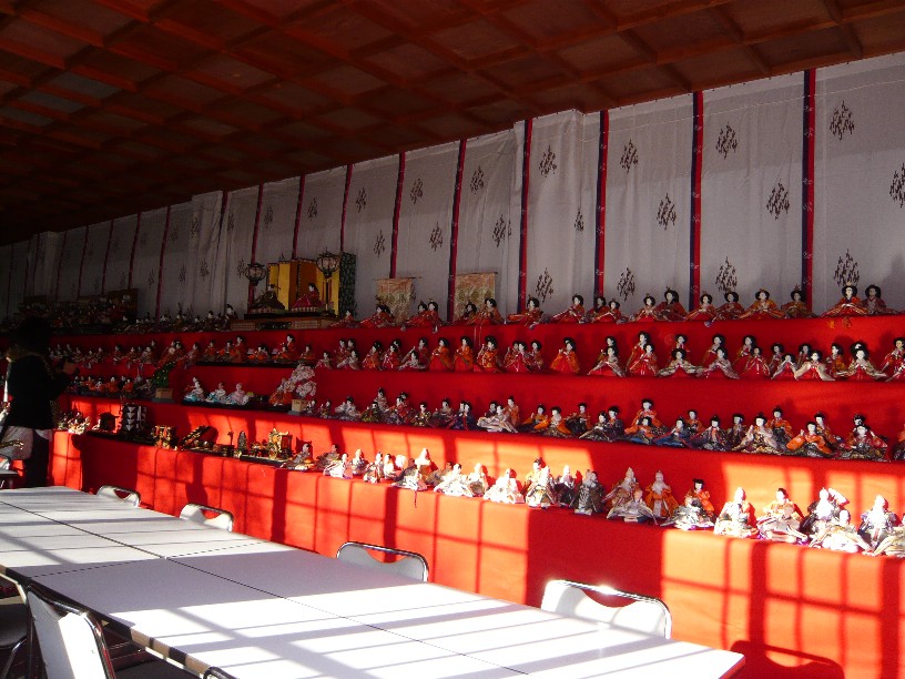 こちらの神社でこんな長~い5段飾りの雛人形を見ることができました。