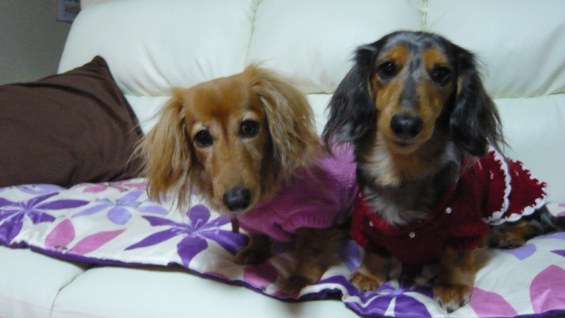 Mダックスの親子と一緒に暮らしています。
