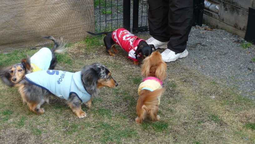 ちょこさん、ヴァニさん、合わせて、ダックス5わんで遊びました~♪