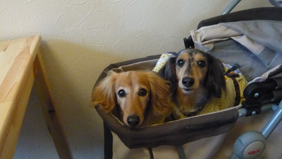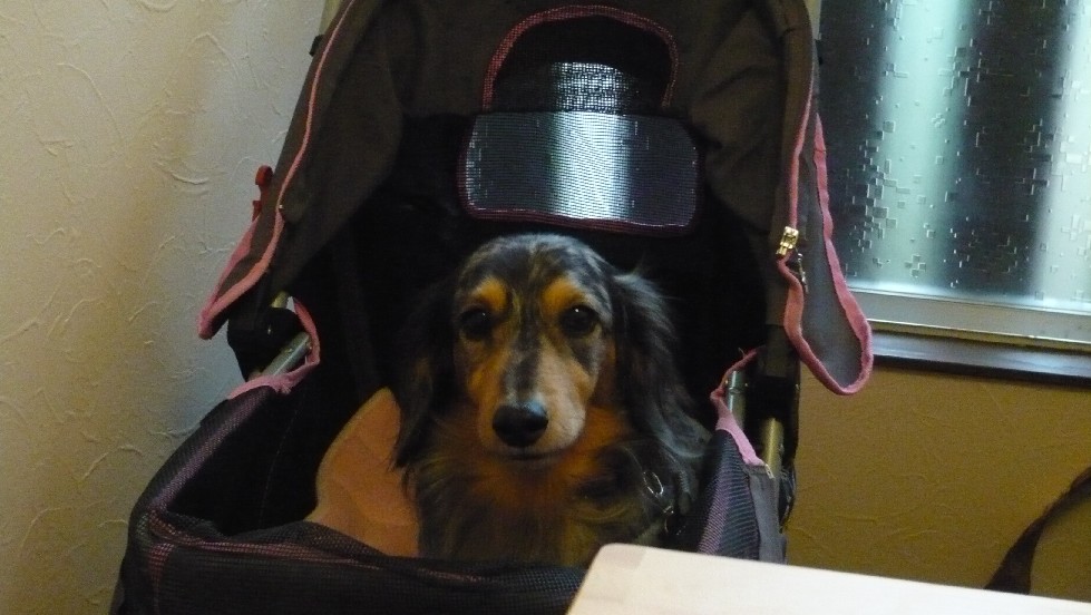 お留守番が苦手で泣いちゃうので連れて行くことに・・・(^▽^;)
