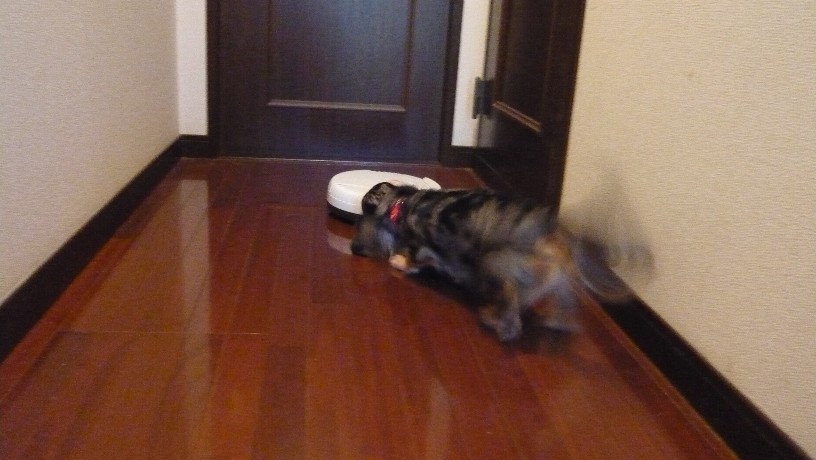 今までお掃除する度にわたしが掃除機を出して来ると、一目散に逃げ惑っていたちょこさんだけど・・・