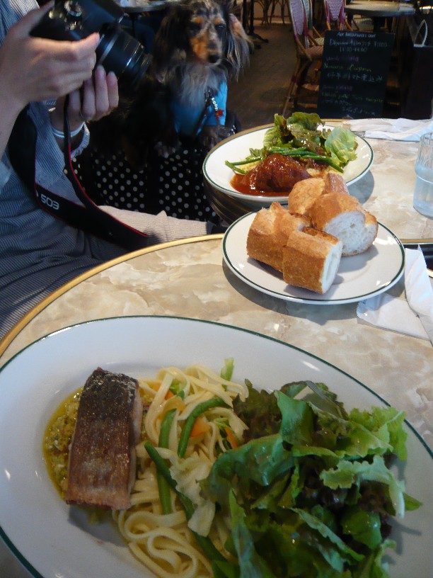 はるくんは近くのお席に運ばれてくるお料理のいい匂いにもお鼻をヒクヒクしてて・・・