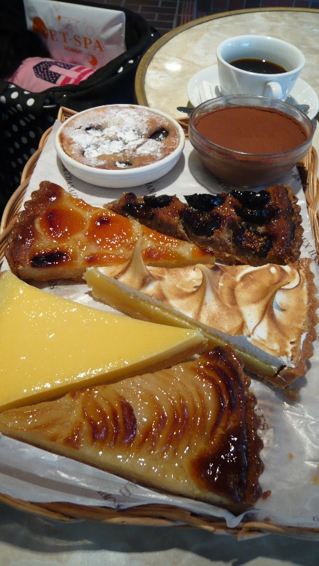 ワタシさんが右奥のチョコレートのムース?だったかな、わたしが一番手前の洋ナシのタルトを
