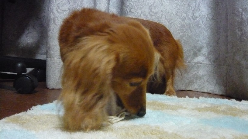 拾い集めたガムをわたしに取られまいと、ちょこさんはまたガムをカミカミし始めてました~