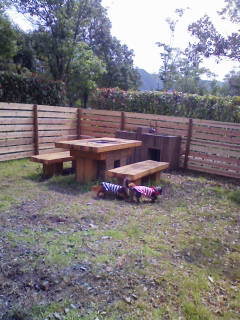 ドッグランの中にバーベキューコーナーがいくつかあったので、ワンたちを遊ばせながら