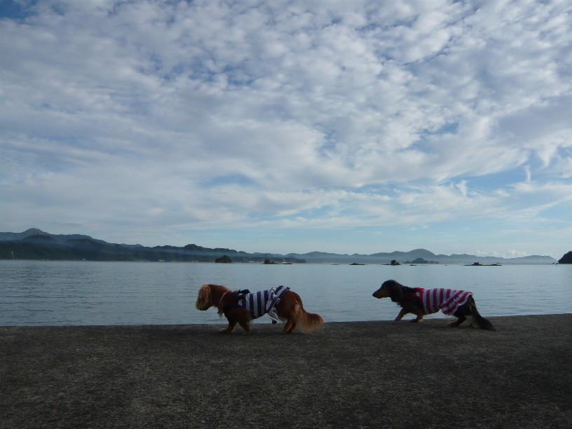 防波堤を走るちょこさんとヴァ二さん・・・
