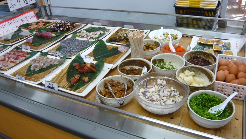 こちらあるビュッヘェ形式の地魚などをセルフで好きなだけトッピングできるっていう