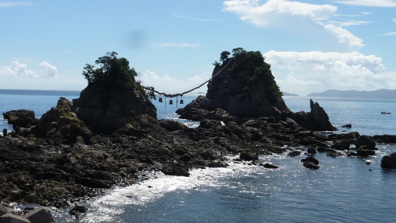 こちらの夫婦岩にかかるしめ縄は長さ65m重さ2トンで、