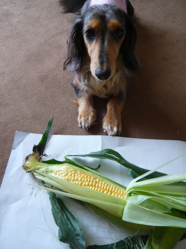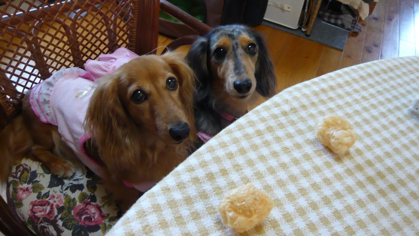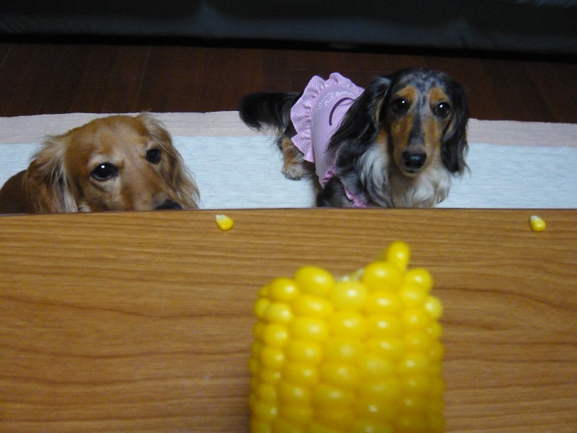 ちょこさんの視線はコーンに、ヴァ二さんはわたしが「よし」と言うのをいまかいまかとまってるから、