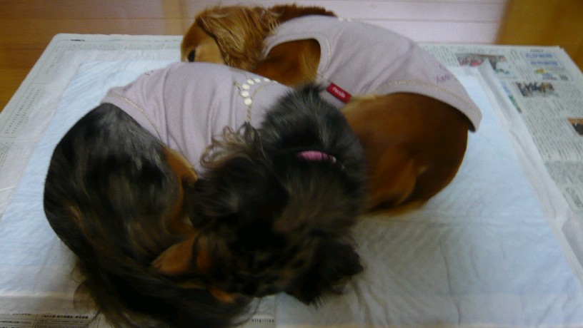 Mダックスの親子と一緒に暮らしています。