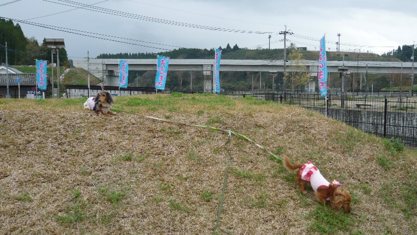 で、道の駅おおのにある広場でちょこさんたちはお散歩することに