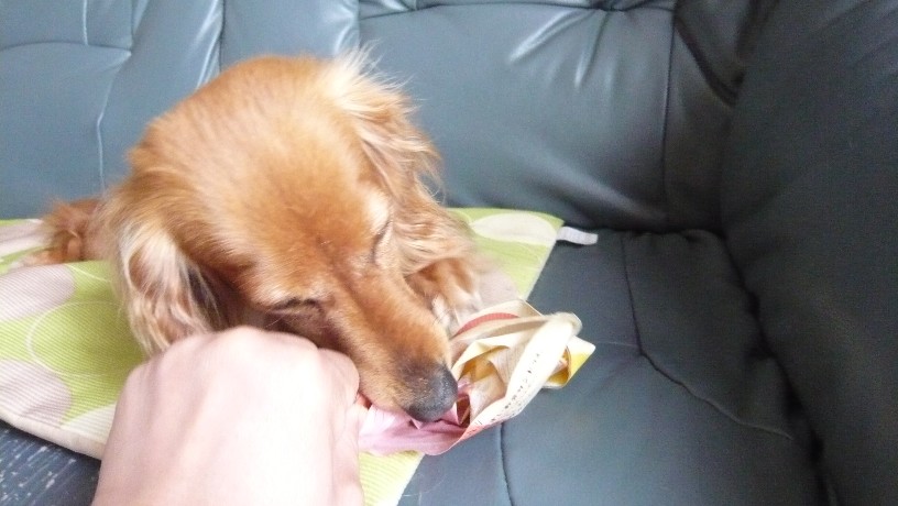 ちょこさんはマズルを袋に突っ込みました