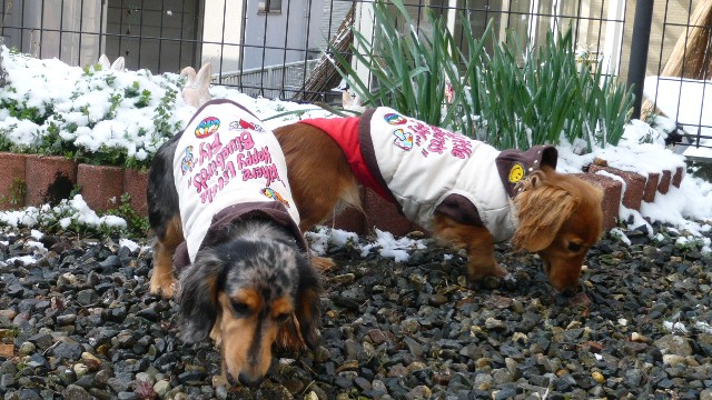 抱っこしてお庭へ行き、ちょこさんんとヴァニさんを庭の雪の上に・・・