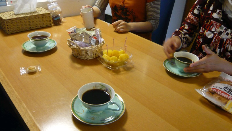 たま。さんのいれてくれたコーヒーや紅茶を飲みながら、ママたちはおしゃべりタイム~
