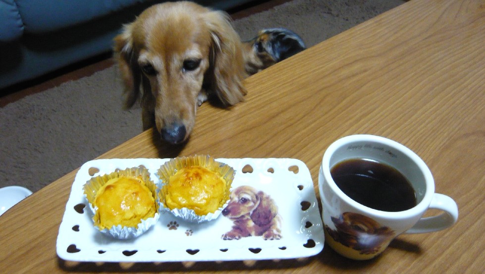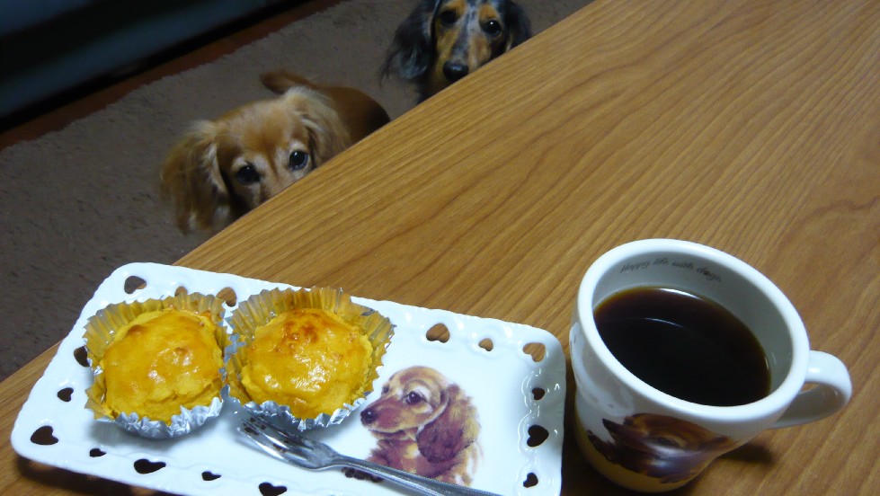 「おしまいよ~「って言ったら、テーブルに残ってるスイートポテトをガン見・・・
